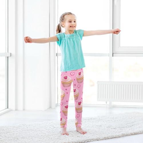 Wusikd Cute Pink Cupcakes Girls' Leggings Toddler Doodles Heart Kids Yoga Pants Dance Active Tights 4T 6