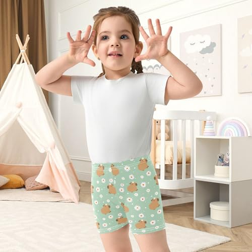 Little Daisy Capybara Green Girls Shorts Elastic Waist Sports Shorts Girls Leggings Pants for 4-10 Years 4