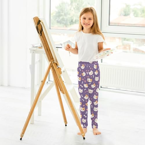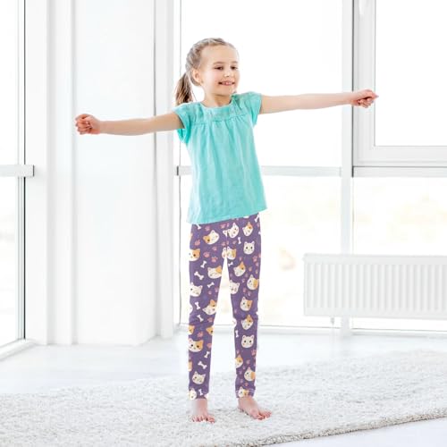 Cats Fish Girls' Leggings Toddler Doodles Bone Paw Kids Yoga Pants Dance Active Tights 4T 7