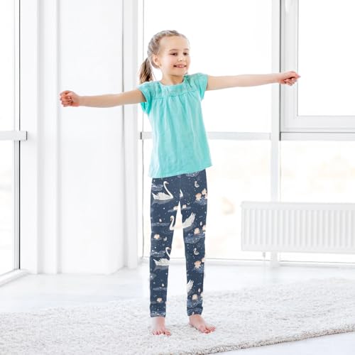 Swan on Lotus Pond Girls Leggings Athletic Pants Tights Stretch Bottom 4