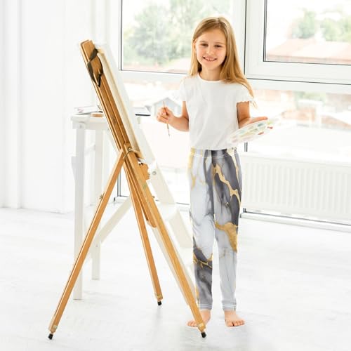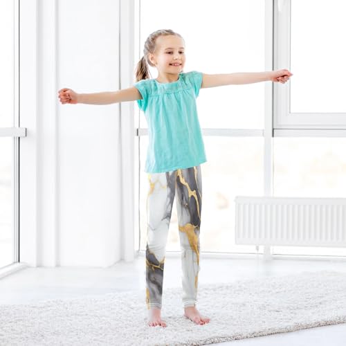 Bolaz Toddler Girls Leggings Printed Yoga Pants Leggings Grey Gold White Marble for Kids 7