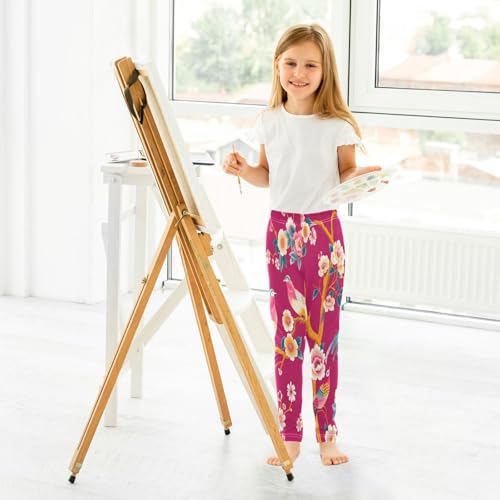 Toddler Girls Leggings Printed Yoga Pants Leggings Hot Pink Bird for Kids 7