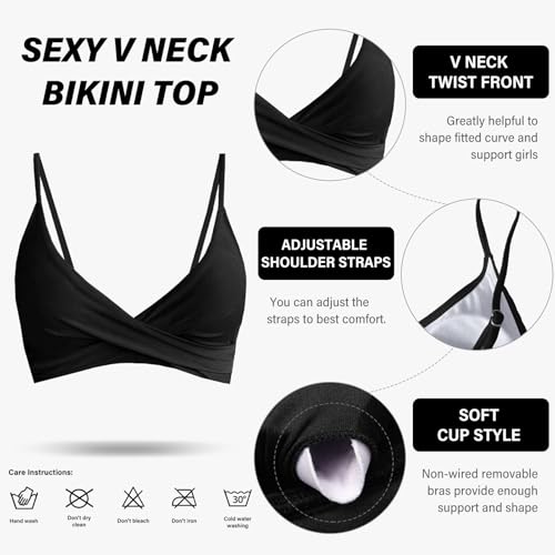 • Push-Up Bikini Top: Features a flattering V-neck design with a crisscross twist front, adjustable spaghetti straps, and removable push up padded cups, offering a better fit and enhancing your natural curves.