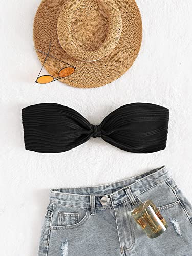 WDIRARA Women's Knot Strapless Backless Swimwear Sleeveless Tube Bikini Top 4