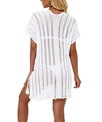 Bathing Suit Cover Ups for Women, Women's Swimwear Beach Bikini Swimsuit Pool Crochet Side Split Dress 4