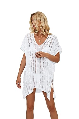 Bathing Suit Cover Ups for Women, Women's Swimwear Beach Bikini Swimsuit Pool Crochet Side Split Dress 1