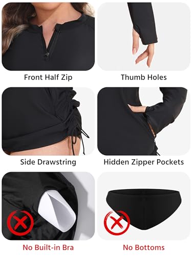 Plus Size Rash Guard for Women Long Sleeve UV Sun Protection Shirts UPF 50+ Swimsuit Tops with Zip Pockets 5