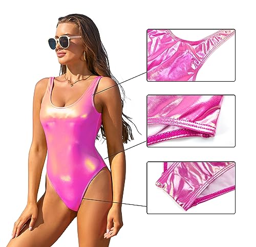 SHEKINI Women's Metallic Shiny Bathing Suit Scoop Neck Backless One Piece Swimsuits 5