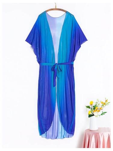 OYOANGLE Women's Ombre Sheer Belted Long Beach Kimono Cover Ups Lightweight Cardigans Resort Wear 1
