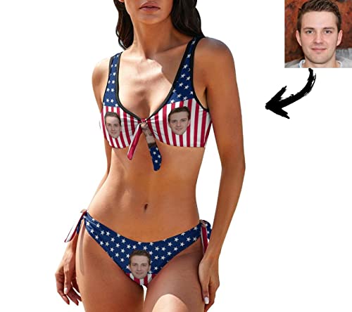 HOT ! Custom Face on Womens Strap Tie Knot Front Bikini Set Sunflower Pattern Tummy Control 2 Piece Bathing Suit Swimsuit