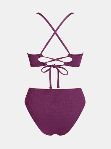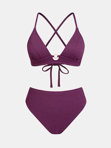 • Design: The Women's Chic Two Piece Bikini Set Features A Flattering High Waisted Design , Sexy V Neck Crisscross Back Detail, Self Tie Adjustable Closure Perfect For Retro Inspired Beach Glamour