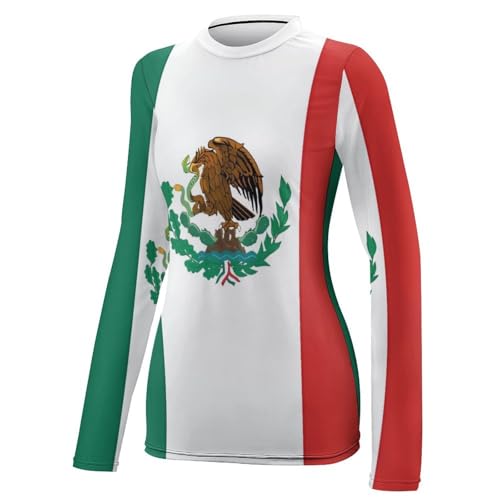 Flag of Mexico Womens Rash Guard Long Sleeve Swimsuits UPF 50+ SPF Shirts Sun Shirt Bathing Suit- 1
