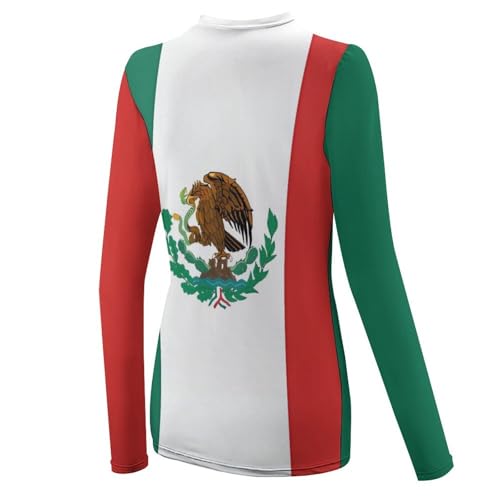 Flag of Mexico Womens Rash Guard Long Sleeve Swimsuits UPF 50+ SPF Shirts Sun Shirt Bathing Suit- 4