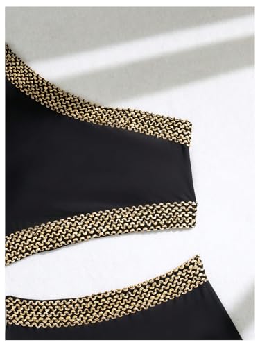 Milumia Women's Two Piece High Waisted Bikini Set Strap One Shoulder Stitch Colorblock Swimsuit 3