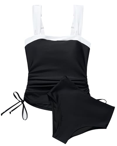 • Tummy Control Tankini Swimsuits: Slimming tankini set feature with front ruched waisted and adjustable drawstring cinched side,provides a great tummy control effect and modifies your waistline for a flattering silhouette.
