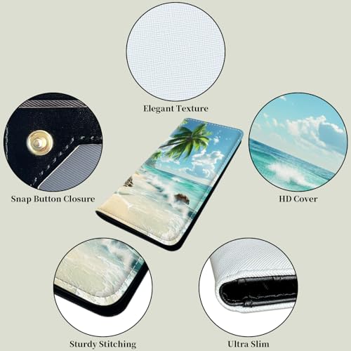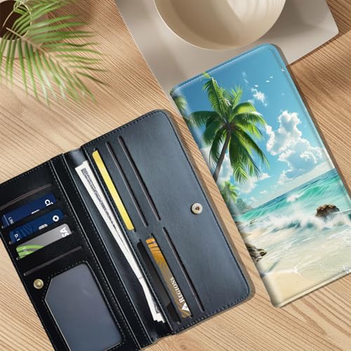 HOT ! Slim Leather Long Wallet for Men & Women, Breast Pocket Wallet, Credit Cards Mens, Leather Wallets Bifold Wallets for Men RFID Blocking Bifold Stylish Wallet, Beach Coconut Trees