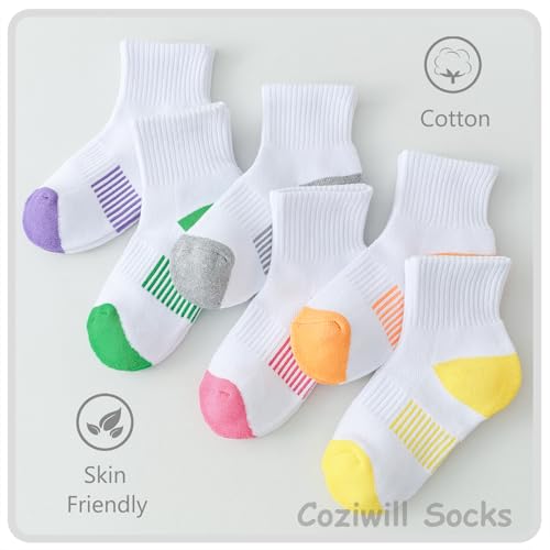 Girls Ankle Cushioned Athletic Quarter Socks - Kids Cotton Short Sports Youth 6/12 Pairs for Boys 6