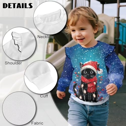 Kids Christmas Sweatshirts Girls Soft Girls Shirts Size 1-8 Years Long Sleeve Ruffle Shoulder Top 6