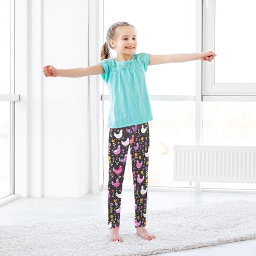 Pink Purple Chicken Flower Girls Leggings Soft Stretch Workout Yoga Dance Pants for Kids Casual Tights 4