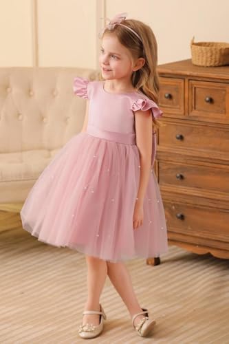 • Elegant Design: Satin flower girl dress, pearl tulle wedding dress. High-quality satin fabric, fashionable ruffle cuffs make the dress more textured. Pearl decoration combined with fluffy multi-layered tulle, charming detachable satin bow adds elegant and noble temperament to the dress. Let girls stand out in weddings, parties and ballet.