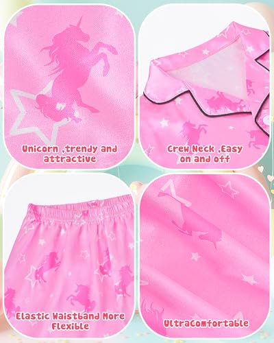 Kids Girls Pajama Set Silky PJS Button-Down Sleepwear Nightwear Loungewear Clothes Set Gifts 4