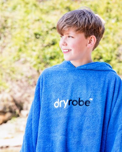 More information about Dryrobe Towel Swim Robe - Hooded Surf Poncho Changing Robe - Organic Cotton - for Swimming, Beach, Surfing - Short Sleeve (Kids 10-13 - Cobalt Blue)