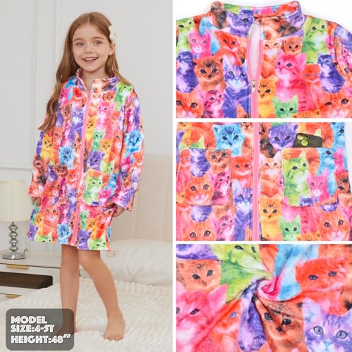 Jxstar Girls Bathrobes Kids Zip Up Robes Plush Soft Coral Fleece Pajamas Sleepwear 4