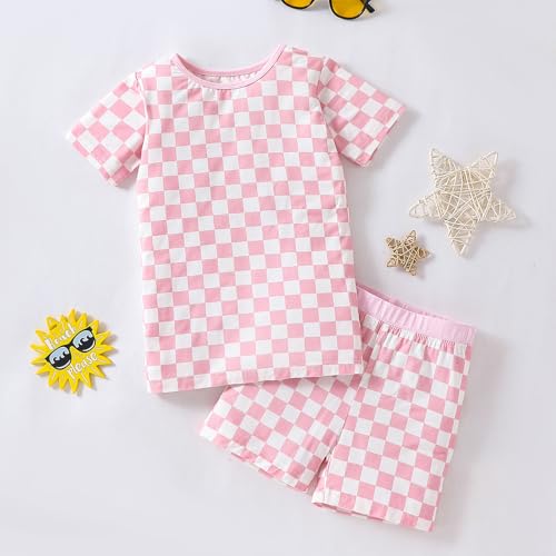 OPAWO Bamboo Pajamas Toddler Boy Clothes Checkered Tee and Shorts 2 Piece Summer Bamboo Baby Pajamas Sleepwear Pjs Set 12M-5T 6