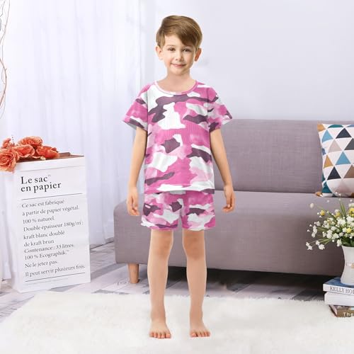 • Details: Two piece pajama set kids features round neck pullover top and matching shorts; Elastic waistband ensures a snug fit and makes it easy on and off