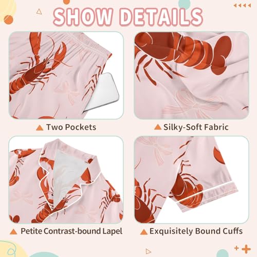 ALAZA Bows Lobster Satin Pajamas Set Short Sleeve Button Down Sleepwear Summer Pjs 2 Piece 1