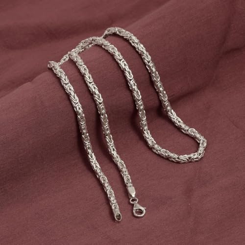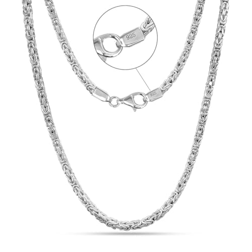 LeCalla 925 Sterling Silver Classic Byzantine Necklace for Men Women | Handmade Italian 4MM Byzantine Link Chain Necklace (18, 20, 22, 24 Inches) 4