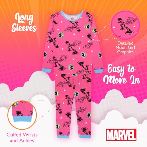 • MARVEL PAJAMAS: Your little girl will dream of cool adventures saving the day with Moon Girl and friends in these cute and cozy kids’ pajamas. She’ll drift off to sleep in this officially licensed Marvel merchandise.