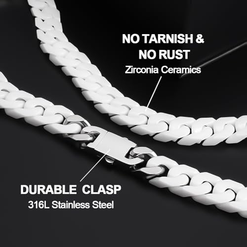 12mm Cuban Link Chain for Men Stainless Steel Silver Mens Chain Necklaces Ceramic White Miami Curb Chain Necklace Hip Hop Jewelry for Men Women 5