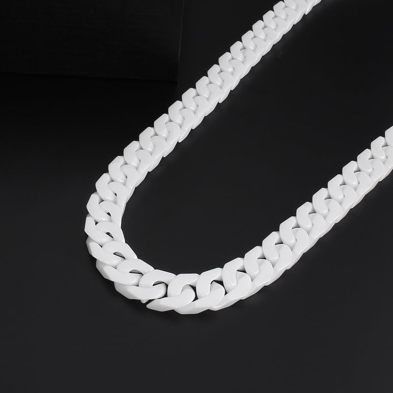 HOT ! 12mm Cuban Link Chain for Men Stainless Steel Silver Mens Chain Necklaces Ceramic White Miami Curb Chain Necklace Hip Hop Jewelry for Men Women