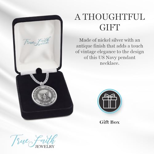 True Faith Jewelry Sterling Silver United States Navy Service Medal with St Michael Patron Saint Archangel Pendant Necklace, 1 Inch 1