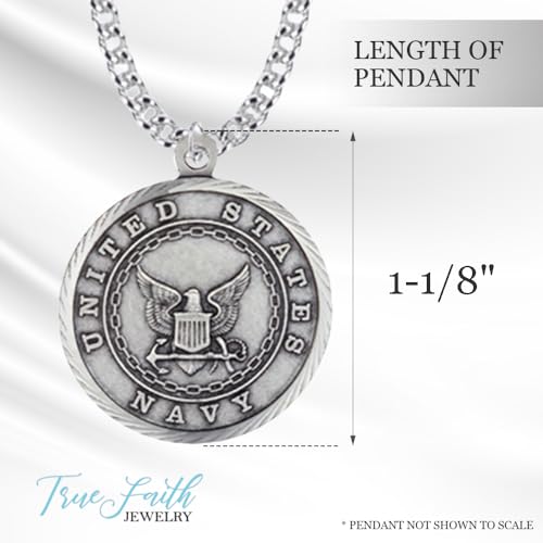 True Faith Jewelry Sterling Silver United States Navy Service Medal with St Michael Patron Saint Archangel Pendant Necklace, 1 Inch 3