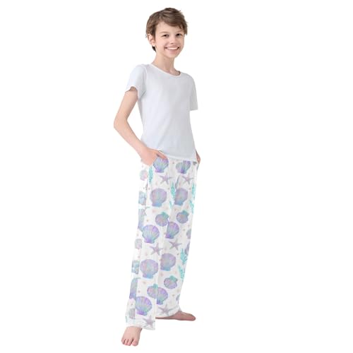Pajama Pants Lounge Sleep PJ Bottoms Sleepwear Elastic Waist Drawstring S Seashells 4