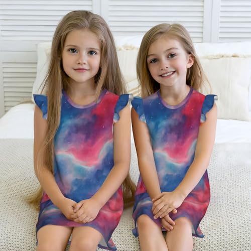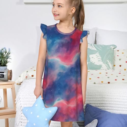 Flutter Sleeve Nightgown Pajama Gown Dreamy Sky Art Easy Pull-On Sleepwear Nightdress 6