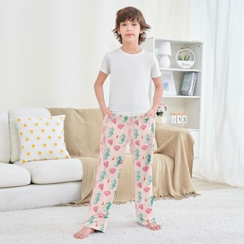 Green Seahorse Pattern Pajama Pants Lounge Sleep Pants Elastic Waist Long Pajama Bottoms with Pockets for 6-14 Years 1