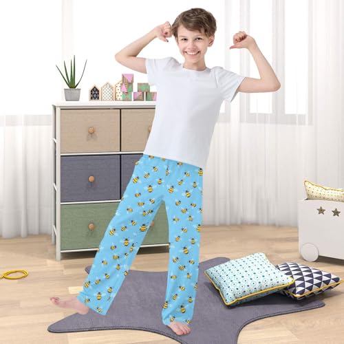 Pajama Pants Sleep Pants Soft Elastic Waist Pajama Lounge Pants Bee Blue Background for 6-14 Years Old 4