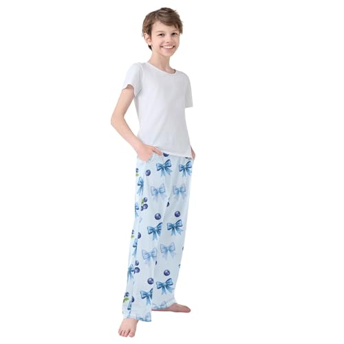Blueberry with Blue Bows Pajama Pants Lounge Sleep Pants Elastic Waist Long Pajama Bottoms with Pockets for 6-14 Years 7