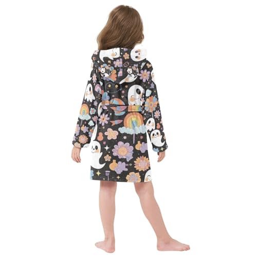 GuoChe Bathrobe For Girls Black Background Rainbow Halloween Design Girls Robe With Hood 4