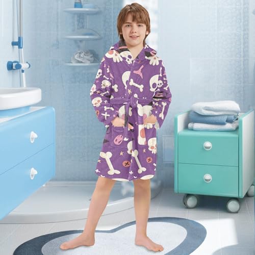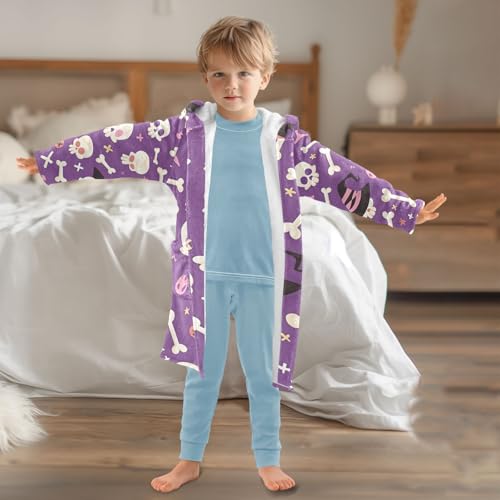 GuoChe Purple Skull Witch Hat Halloween Design Hooded Robes Girl Robes For Kids 7-8 7