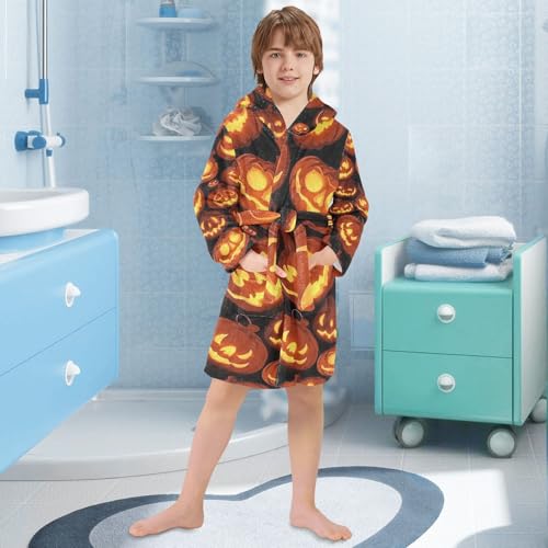 Bathrobe Kids Girls Glowing Pumpkin Girls Robe With Hood 6