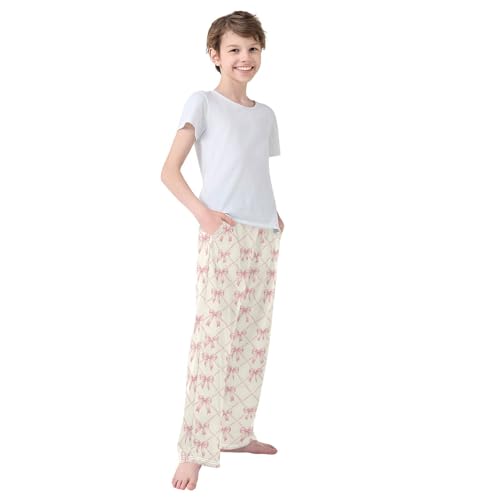 Pajama Pants Sleep Pants Soft Elastic Waist Pajama Lounge Pants Pink Bow Rhombus Plaid for 6-14 Years Old 7