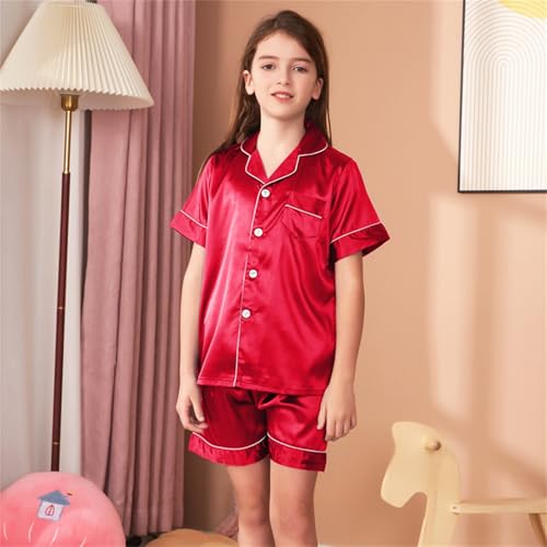Teen Girls 2pc Satin Short 𝐏ajamas Sets Button Front Collar Shirt Shorts 𝐏𝐉 Soft Lightweight L𝐨ungewear Sl𝐞epwear 3