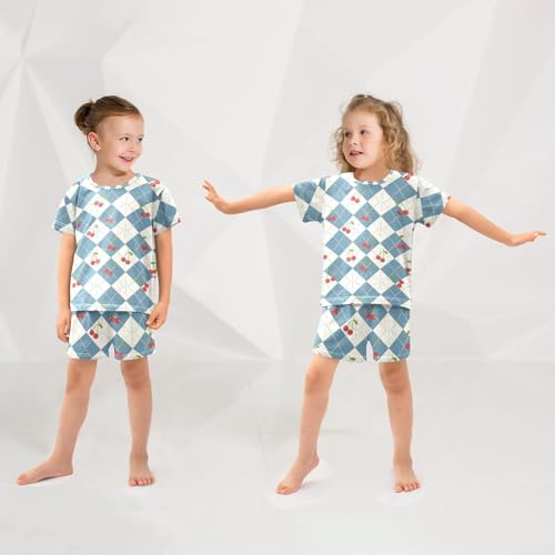 Pajama Short Sets Cherry Diamond Pattern Soft Cotton Summer Sleepwear 2 Piece PJS Size 5-14T 2