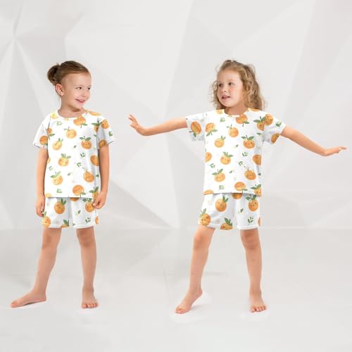 Pajama Short Sets Cute Oranges Soft Cotton Summer Sleepwear 2 Piece PJS Size 5-14T 2
