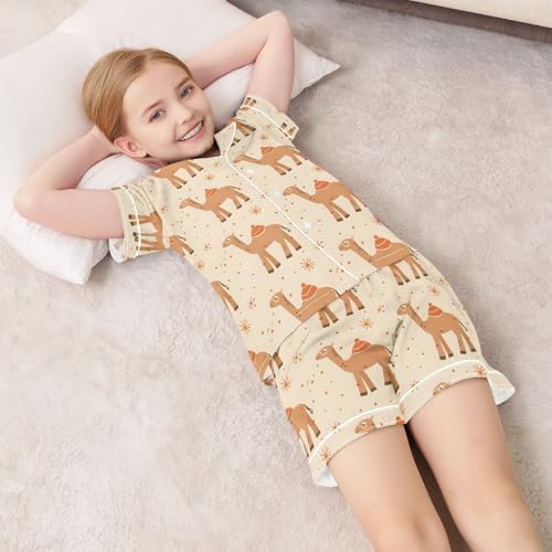 Animal Camel Pattern Pajamas Set Summer Button Down Sleepwear Pjs Sets Comfy Loungewear 2