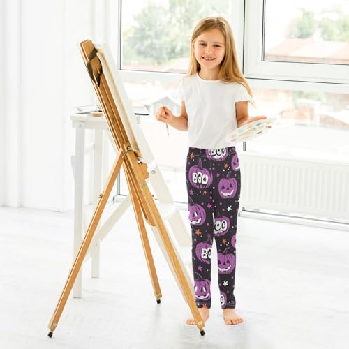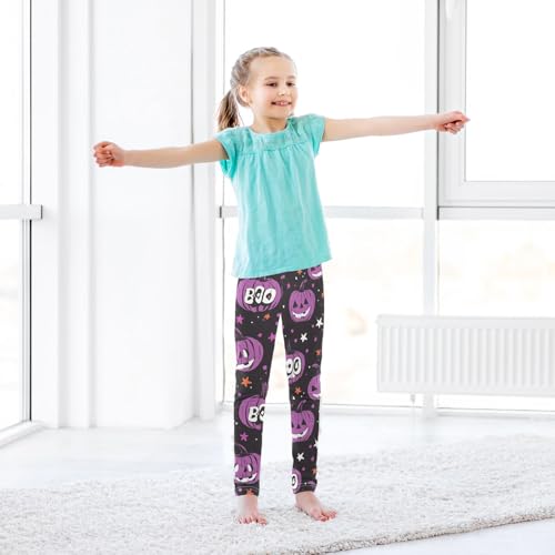 Purple Pumpkin Boo Girls Leggings Soft Stretch Workout Yoga Dance Pants for Kids Casual Tights 4